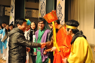 随后第八届外语文化艺术节的重要子活动——百味人生外文小品大赛拉开帷幕,参加当晚决赛的八支队伍是从报名参赛的21支队伍中选拔而来,各个节目主题鲜明、内容丰富、形式多样,难能可贵的是很多节目都是同学们自己编剧排演,比如中美091班的《三打白骨精》取材于人尽皆知的《西游记》,又融合现代元素;086班的《祝福》则改编自鲁迅作品;082班的《非诚勿扰》别出心裁的将电视节目搬上舞台。各支队伍不仅在舞美设计上匠心独运,也在服装、灯光上花了不少心思。所有节目坚持突出外语特色,演员们声情并茂地演绎博得在场观众的热烈掌声。