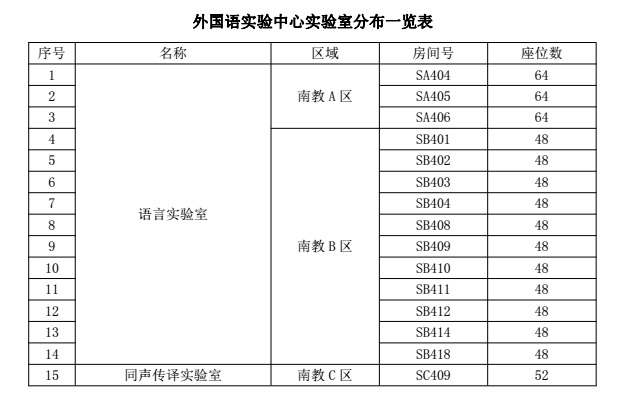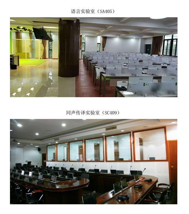 外国语实验中心始建于2001年,是外国语学院的实验室管理机构。到目前为止,实验中心现有实验室总面积1675平方米,学生座位800余座,共投入建设资金400余万元。下设有14间语言实验室、1间同声传译实验室。
